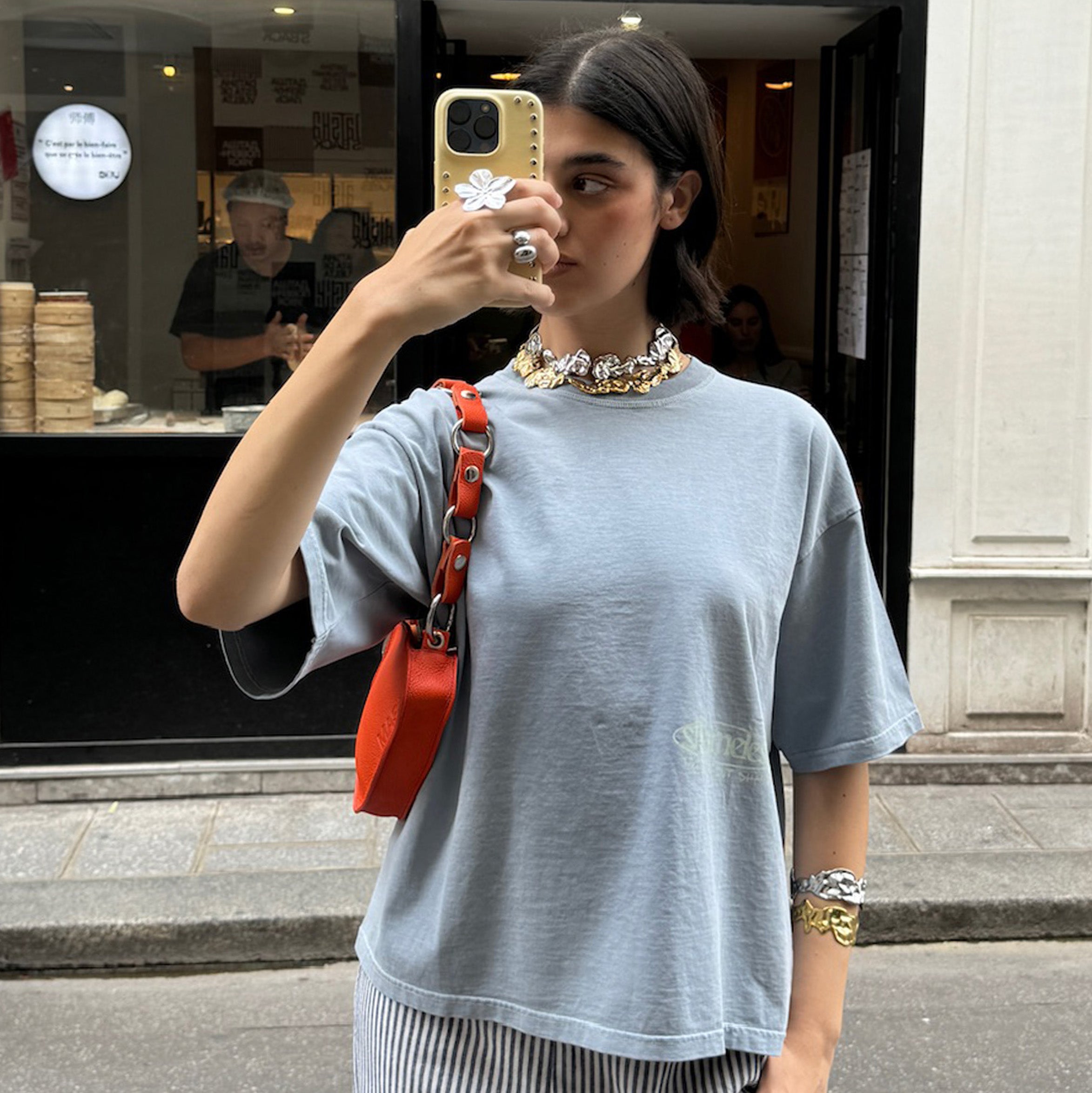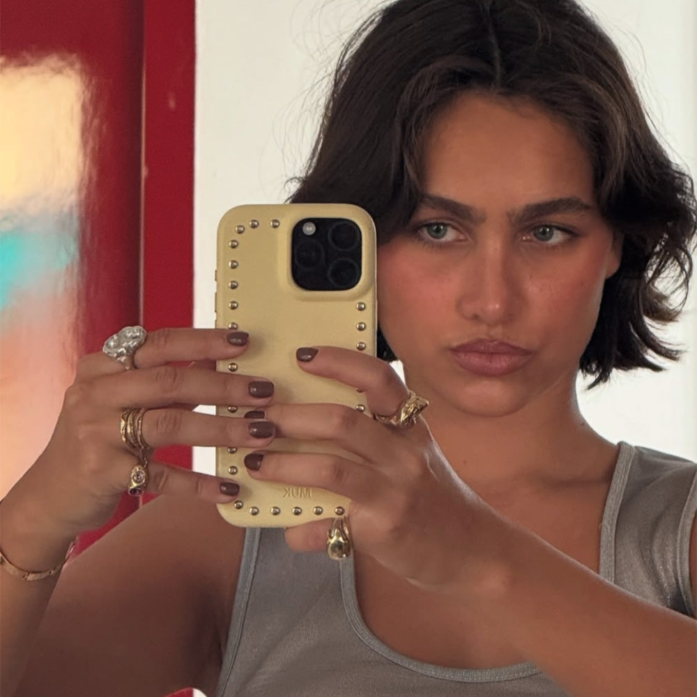 Cases with metal details, such as studs, are made of delicate materials that, with use and the passage of time, may suffer some wear and tear, especially if they come into contact with liquids, creams or humid environments.