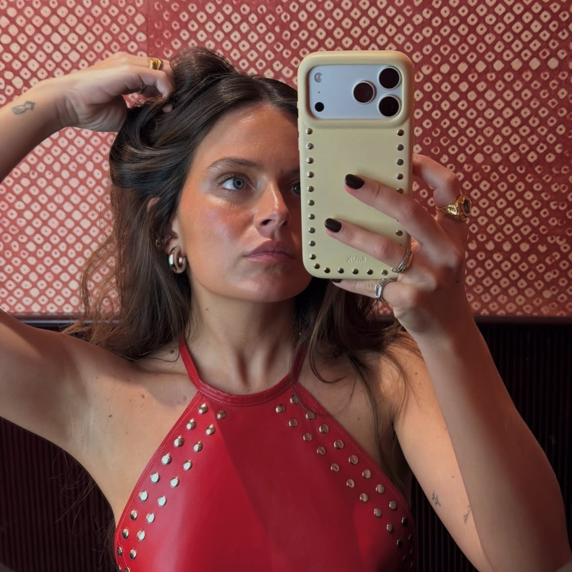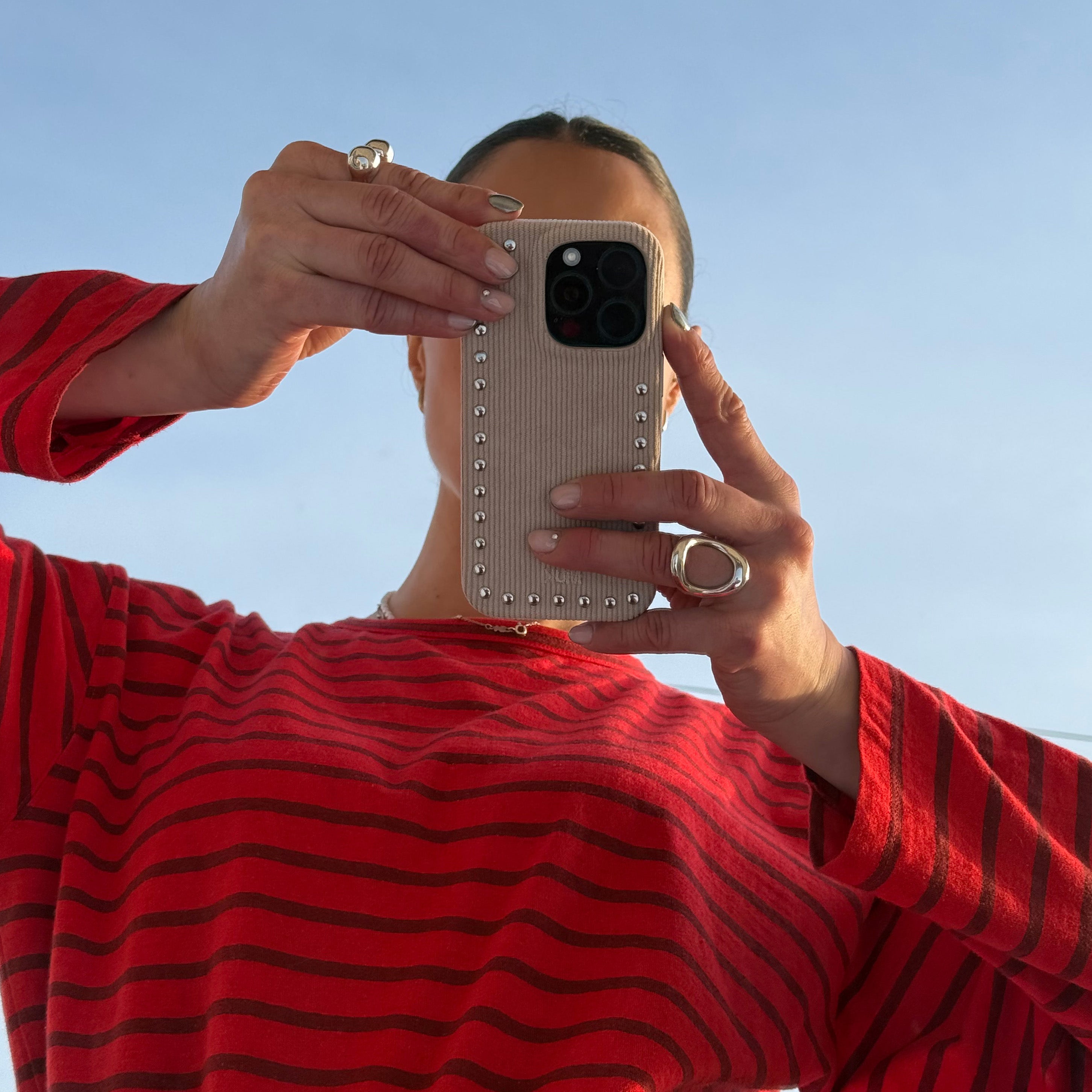 Cases with metal details, such as studs, are made of delicate materials that, with use and the passage of time, may suffer some wear and tear, especially if they come into contact with liquids, creams or humid environments.