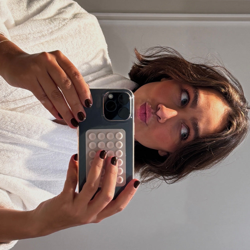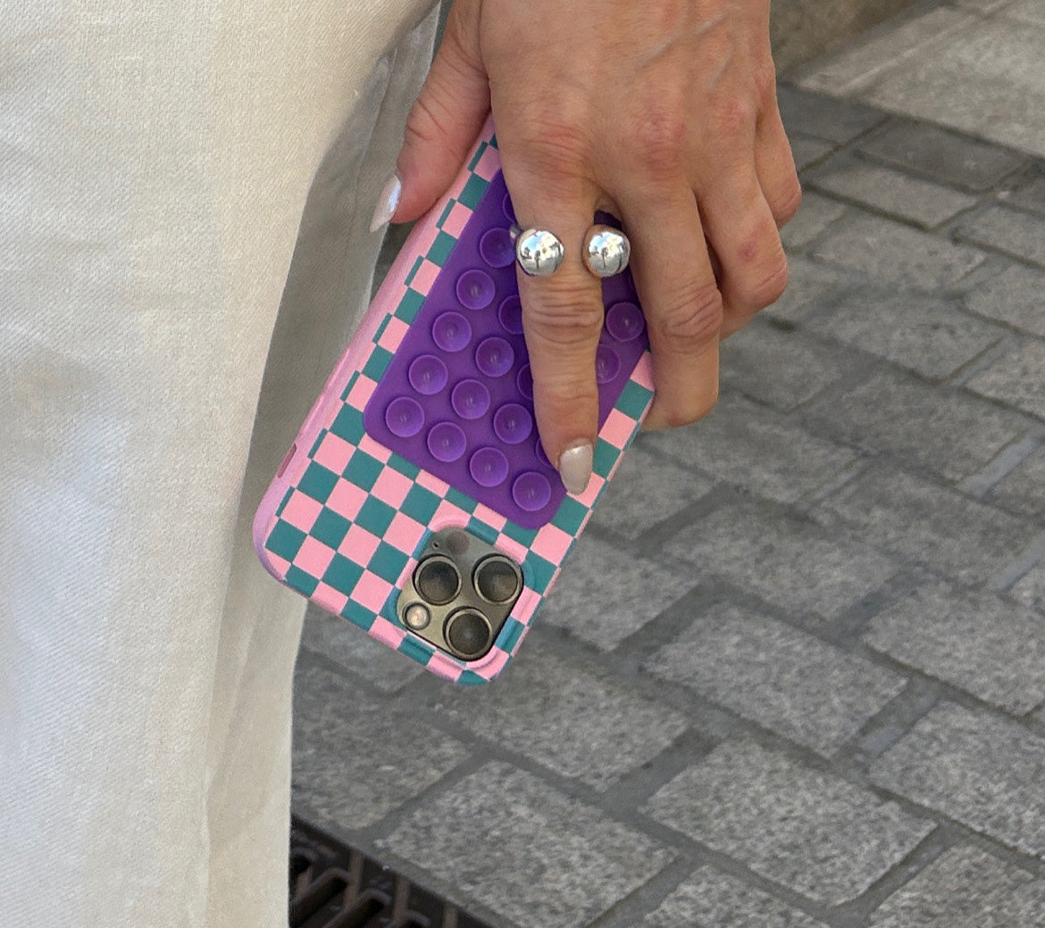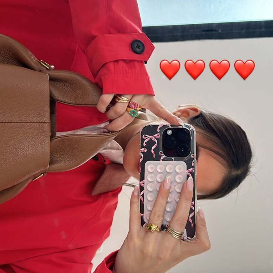 Ventosas de silicona para móvil en forma de corazón con un fuerte adhesivo de 3M para poder pegar sobre cualquier móvil o funda de móvil, exclusiva de la colección Laura Escanes x Muk.